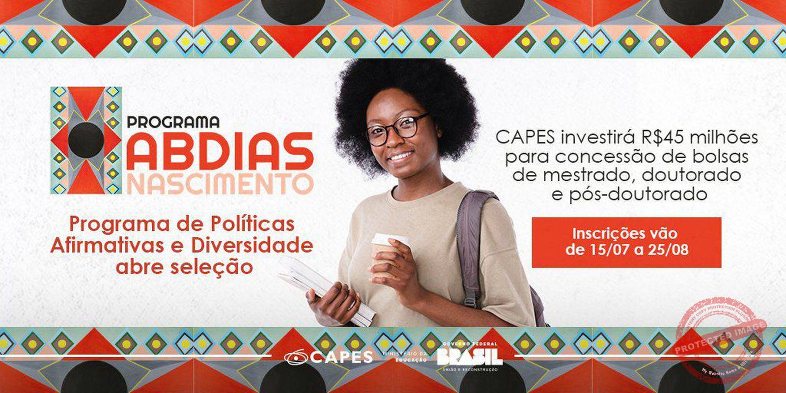 Essa política afirmativa e de diversidade é uma das ações do Programa de Desenvolvimento Acadêmico Abdias Nascimento, recriado pelo Ministério da Educação (MEC) e pela Capes em junho deste ano [